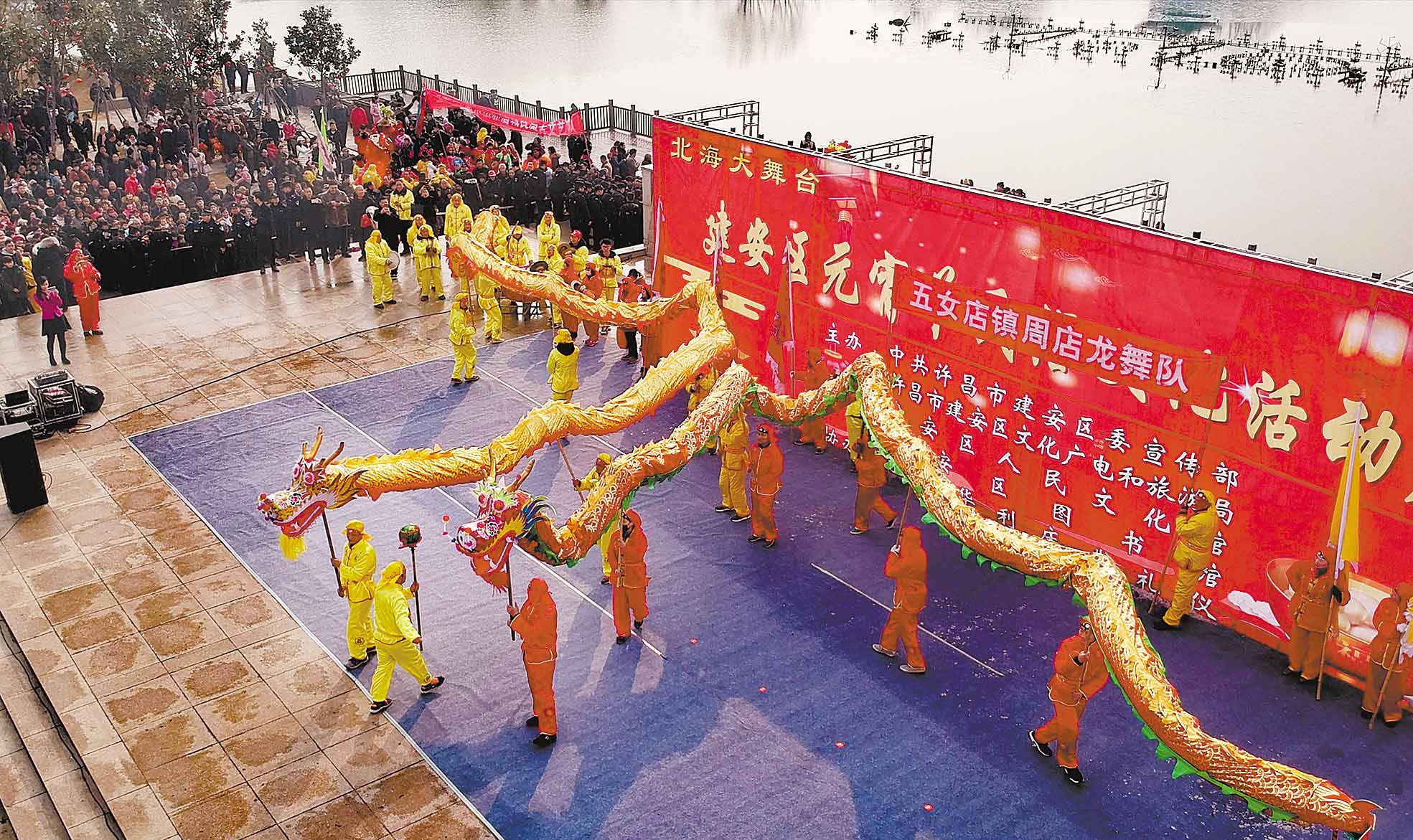 2月19日上午,建安區元宵節民俗文化展演在北海公園隆重舉行。當日,北海公園人山人海,舞獅子、踩高蹺、劃旱船等民俗節目豐富多彩,節日氣氛濃厚。