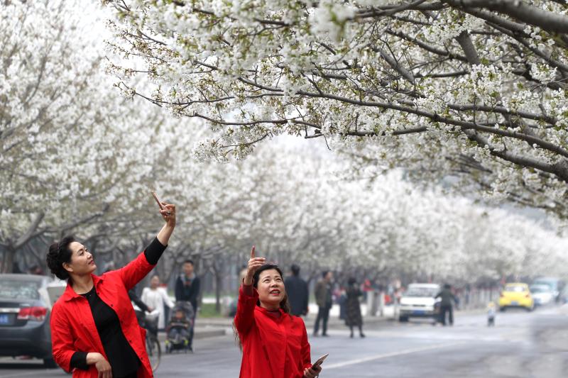 3月20日,市民和游客在許昌學院櫻花大道上觀賞櫻花。近日,隨著天氣轉暖,許昌學院櫻花大道上的櫻花綻放如雪,一派春意盎然的景象。今日,許昌學院第三屆“櫻花文化節”開幕,其間將舉辦“千色競秀”繪櫻花、“心靈手巧”櫻花工藝品展示、“浪漫櫻花”舞動青春等活動,讓市民、游客及師生不僅看到櫻花之美,領略高校獨特的文化品位和文化氛圍。