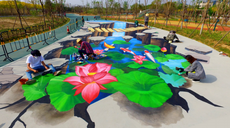 4月8日,工作人員在中央公園繪制3D景觀路。手繪3D景觀通過別出心裁的藝術(shù)創(chuàng)作,呈現(xiàn)立體的視覺效果。觀眾站在相應(yīng)角度欣賞時(shí),可進(jìn)入其營造的3D立體空間,實(shí)地體驗(yàn)與畫面相融的奇特感受,暢享3D藝術(shù)畫帶來的魔幻感覺。