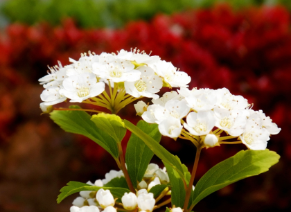 繡球繡線菊又稱珍珠繡球,是薔薇科繡線菊屬落葉灌木。其花朵的傘形花序有總梗,具花10朵至25朵;萼片呈三角形,花瓣呈白色。花朵小巧密集,布滿枝頭,宛若串串珍珠,又如積雪。
