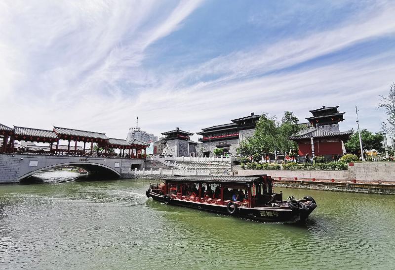5月26日,在市區(qū)護(hù)城河南段,市民乘坐仿古游船觀光游覽,一幅宜居之城的美麗畫卷徐徐展開。如今,魏都區(qū)通過(guò)深入開展大氣污染防治工作,城區(qū)天更藍(lán)、水更清、地更綠,空氣質(zhì)量得到明顯改善。 本報(bào)記者 喬利峰 攝