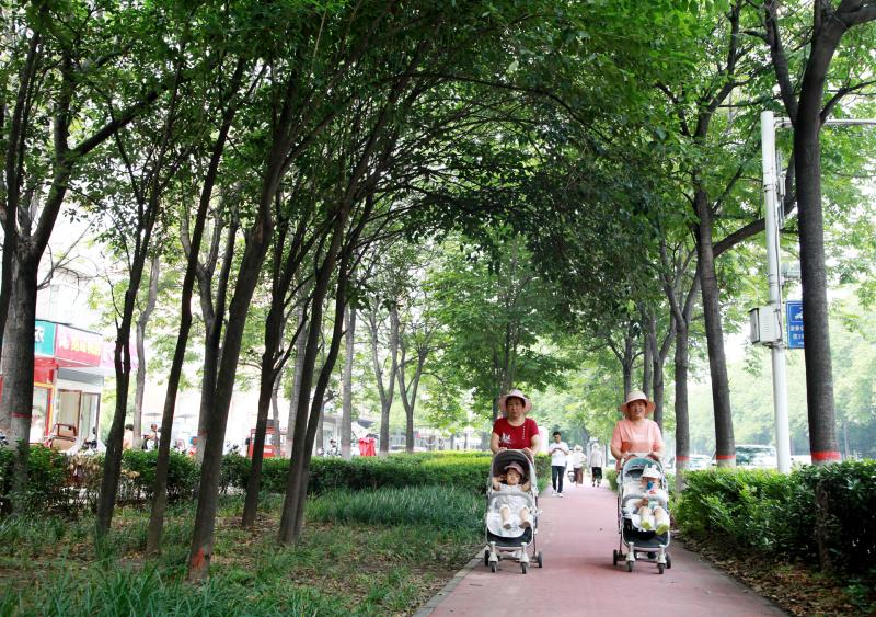 7月18日,市區學府街,市民在步行道上散步享受綠蔭下的清涼。如今,我市按照“以人為本、貼近群眾、服務民生”原則,加快城市園林綠化步伐,增加城市綠蔭覆蓋,不斷改善和提升城市環境生態質量,讓城市空氣更加清新,生活環境更宜居,景色更優美。