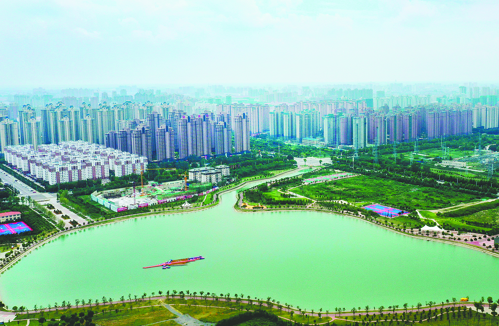 8月4日,無人機航拍下的鹿鳴湖畔,呈現(xiàn)出一幅高樓林立、生態(tài)和諧的美麗畫卷。如今,我市不斷推進生態(tài)建設,培育綠色產(chǎn)業(yè),發(fā)展特色經(jīng)濟,一個“城在林中、林在城中,城在水中、水在城中,城在村中、村在城中”城鄉(xiāng)一體化發(fā)展的新許昌展現(xiàn)在人們面前。