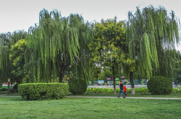 圖片于9月15日攝于春秋廣場附近。初秋時節,柳樹還是那樣綠。直到深秋,別的植物葉子落光了,柳樹才換上“金裝”。柳樹把美麗留給了人們。 晨報攝友 楊望祥 攝 ?