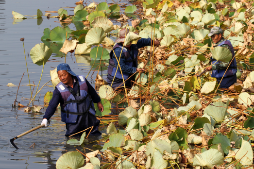 清理殘荷 保護水質