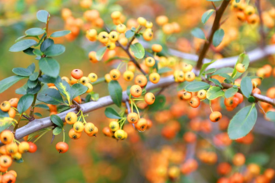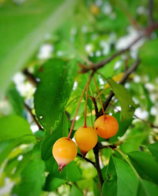 一片片紅葉掛著沉甸甸的露珠,樹上接滿了果子。山楂像一個個紅燈籠,給人一種喜慶的感覺。
