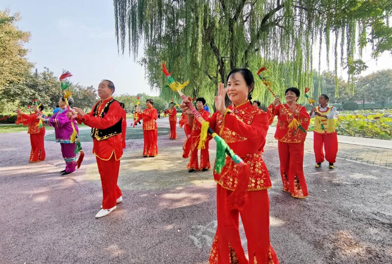 10月18日,市區街頭一游園,市民隨著音樂的節奏跳舞健身。如今,我市通過文明城市創建,人居環境不斷改善提升,城鄉居民群眾文化生活日益“美”起來。 本報記者 喬利峰 攝
