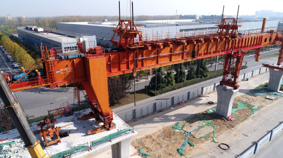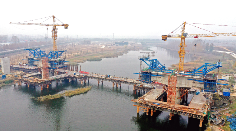 摘要: ?11月24日拍攝的鄭許市域鐵路跨雙洎河橋施工現(xiàn)場(chǎng)。該項(xiàng)目位于長(zhǎng)葛雙洎河濕地公園,以連續(xù)梁形式,交角78°跨越雙洎河,共分為24個(gè)對(duì)稱(chēng)澆筑段和3個(gè)合龍段,目前正在進(jìn)行托架預(yù)壓階段施工。