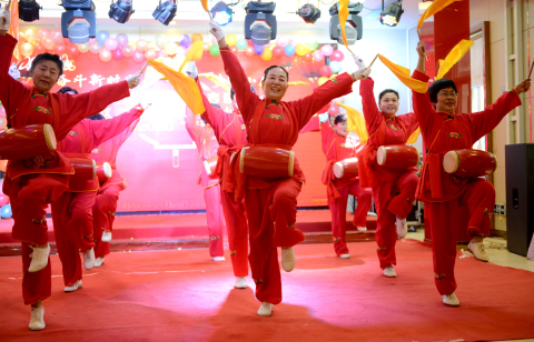 1月18日,演員們在表演節目《開門紅》。當日,由中共魏都區委組織部主辦、魏都區新興街道辦事處黨工委等單位聯合承辦的社區網絡春晚拉開序幕。大家載歌載舞,喜迎春節的到來。記者 牛志勇 攝 ?
