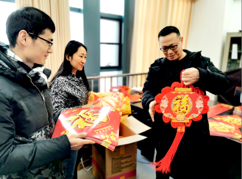 1月14日,市文明辦的工作人員(中)在發(fā)放傳播文明新風(fēng)的春聯(lián)、福字和中國(guó)結(jié)。 春節(jié)臨近,市委宣傳部、市文明辦印制了6萬(wàn)多副春聯(lián),并制作了1000多個(gè)中國(guó)結(jié),免費(fèi)發(fā)放給許昌各縣(市、區(qū))的群眾,以及為文明城市創(chuàng)建作出突出貢獻(xiàn)的市直各主創(chuàng)單位。中國(guó)結(jié)將社會(huì)主義核心價(jià)值觀的內(nèi)容融入其中,春聯(lián)則突出許昌建設(shè)“智造之都、宜居之城”的奮斗目標(biāo)。 記者 毛迎 攝