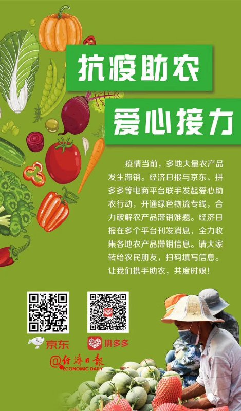 經濟日報2月14日發布#幫農民朋友賣果蔬#消息后,在社會各界引起了強烈反響,又一家電商平臺立即加入到了這一隊伍中來。請大家轉給農民朋友,掃碼填寫信息↓愛心助力,共渡難關!轉發擴散!