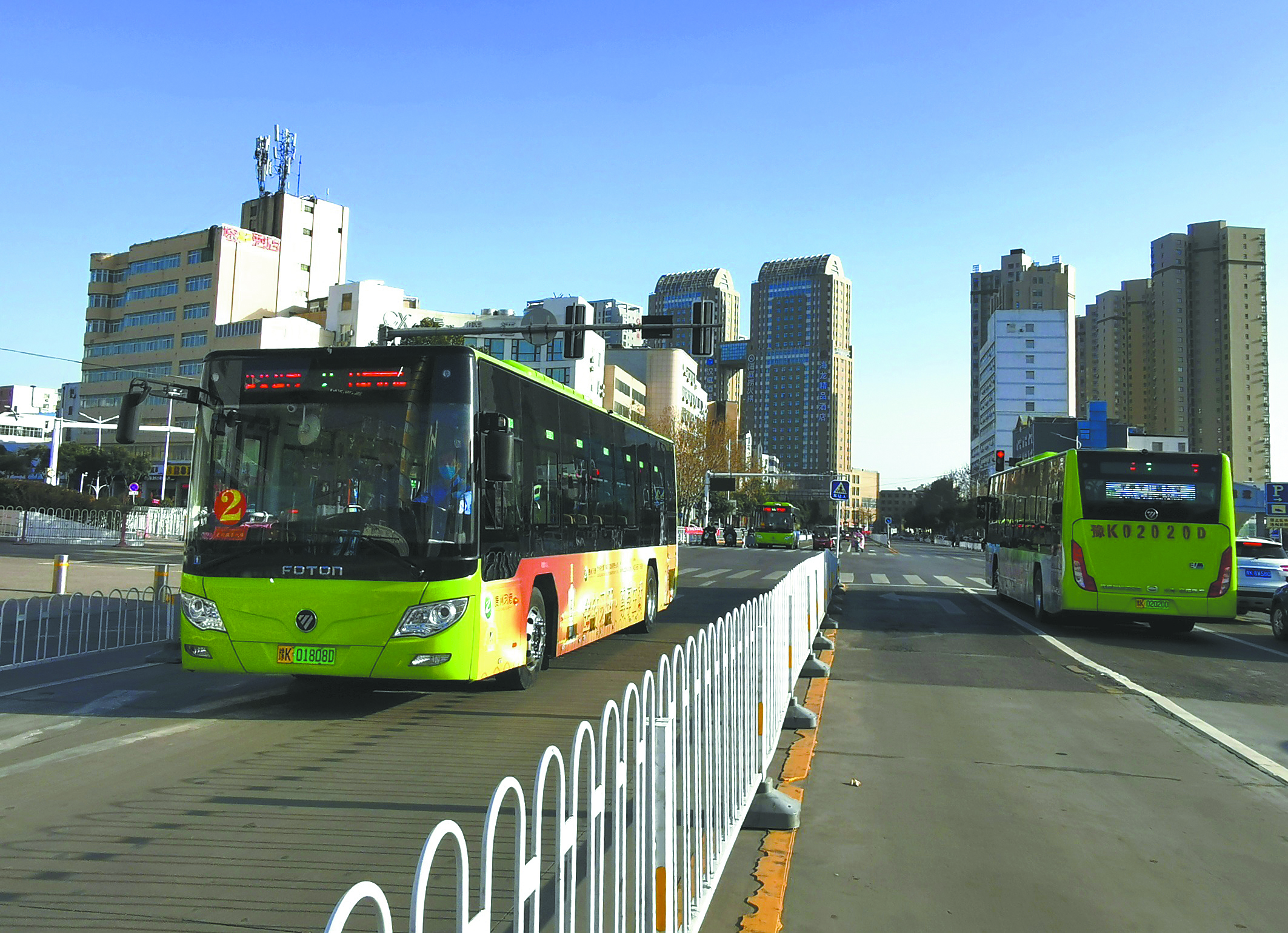 2月22日,市區街頭,公交車正常運營。目前,我市交通運輸部門針對疫情,在全面加強安全防護的同時,已恢復2路、5路、6路、66路等公交車線路的運營服務,保障市民群眾出行需求。 本報記者 喬利峰 攝