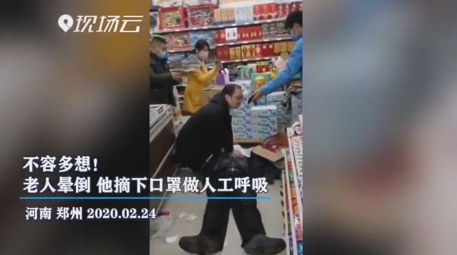 新華社鄭州2月26日電(記者雙瑞)超市貨架旁,一名男子把面部的口罩拉到下巴下方,單膝跪地,一邊給躺在地上的人進行胸外心臟按壓,一邊對著手機向120口述現(xiàn)場。隨后他俯下身做人工呼吸,旁邊傳來圍觀者的驚嘆聲:“醫(yī)生真?zhèn)ゴ螅话闳诉@時候誰還敢做人工呼吸啊!”