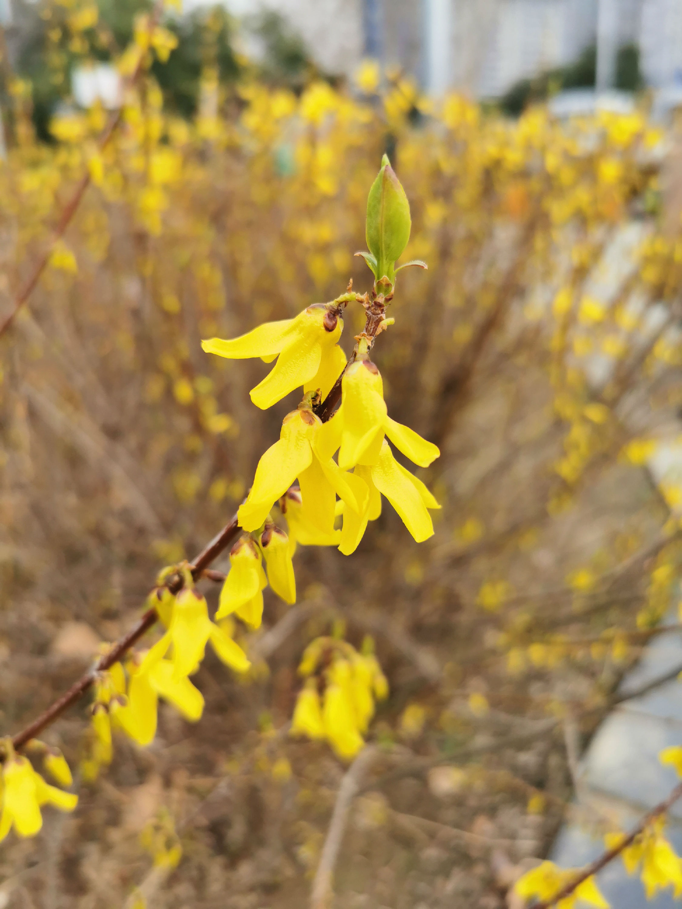 市區(qū)中央公園,迎春花綻放。 記者 毛迎 攝