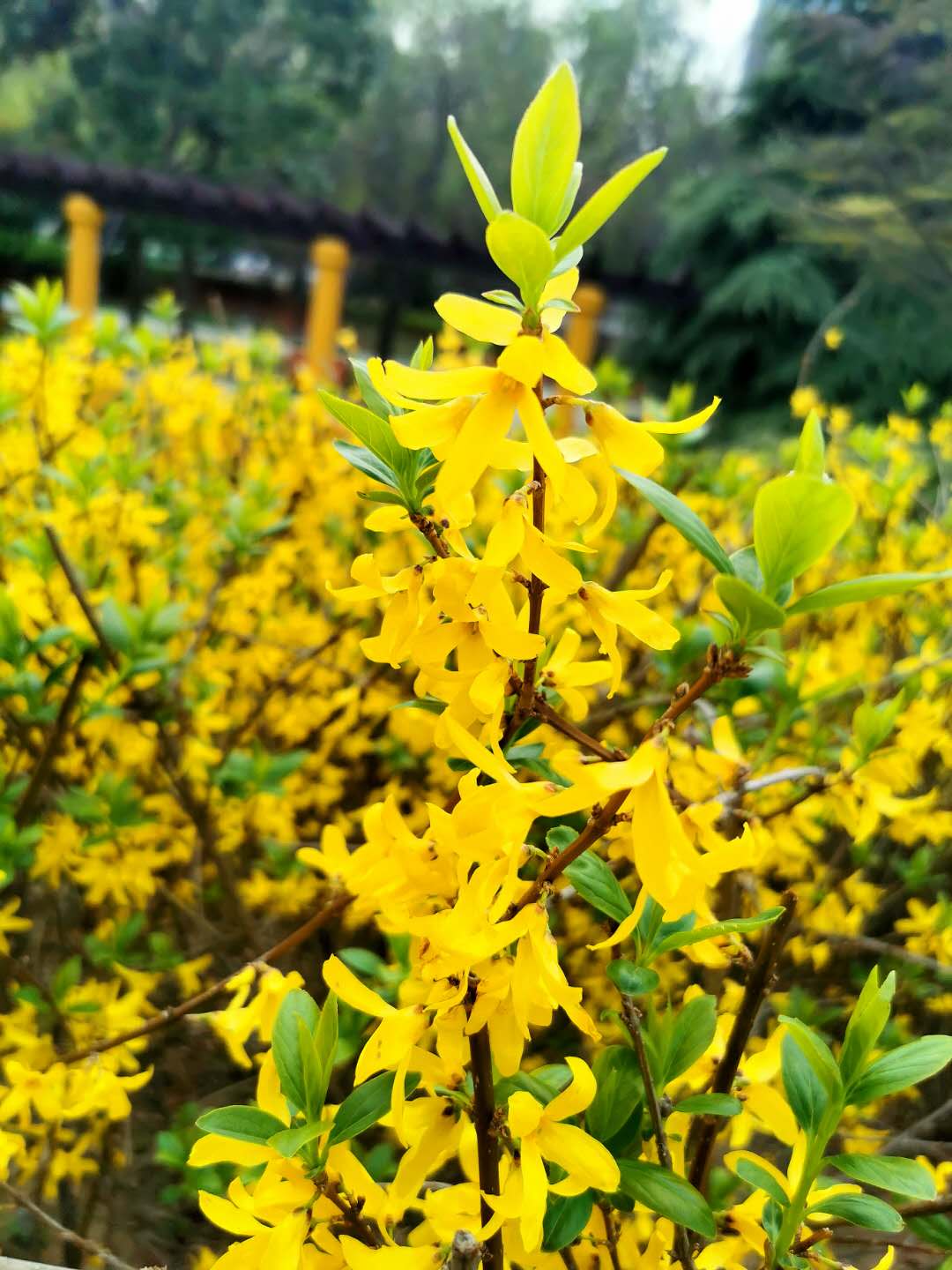 清潩河游園,連翹花開。