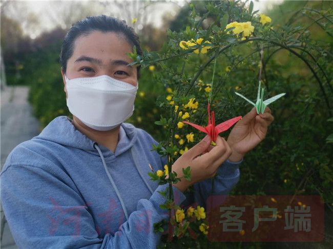 鄭州人民醫院急診科護士長邵青青拿著兩只千紙鶴,將千紙鶴系在廣場路邊迎春花的枝頭,兩只千紙鶴在風中自由地飛動著?!案卸饔鲆?,如有機會希望可以再相見。武漢的春天來了,愿這兩只千紙鶴載著我和患者的夢想一起飛!武漢必勝,湖北必勝!”邵青青說,“回想在武漢一個多月的點點滴滴,有苦、有累,但更多的是感動。”