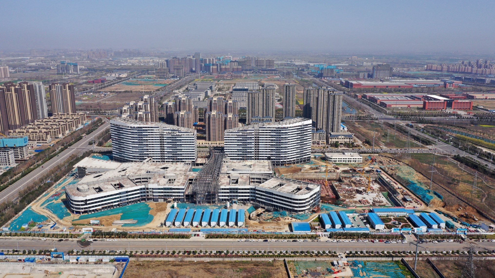 3月24日,建設中的許昌市中心醫院新院區(無人機照片)。許昌市中心醫院新院區項目位于魏文路以東、德星路以西、文軒路以北、清苑路以南,西臨中央公園,東接鹿鳴湖體育公園。該項目占地256畝,總投資17.88億元人民幣,總建筑面積304224.6㎡,規劃床位1500張,預計2020年年底投入使用。據悉,該項目引入了中原人文文化和河南自然文化理念,使整個院區環境優美、綠意盎然;建筑取意于“坤”卦和太極形態,門診樓、急診樓、醫技樓、病房樓等自北向南依次分布,“S”形連廊和圓形通道連接各區域,讓整個就醫流程更加方便和快捷。記者 牛書培 攝