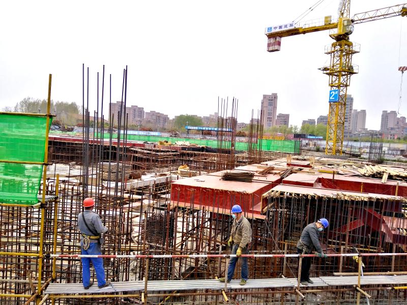 3月31日,在長葛市職工之家項目工地,工人們正在緊張作業。長葛市職工之家項目是我市重點建設項目之一,計劃投資2億元。長葛市總工會采取得力措施,做到防疫與安全生產兩不誤,推動該項目建設。
