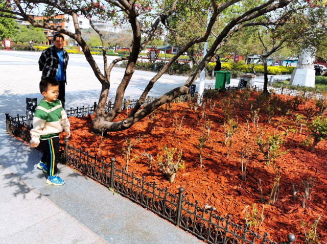 4月15日,市區春秋廣場花壇中剛剛鋪設的新型有機覆蓋物木奇引起了市民的關注。木奇具有保持水土、抑制揚塵、節約成本等特性,被譽為“城市吸塵器”。