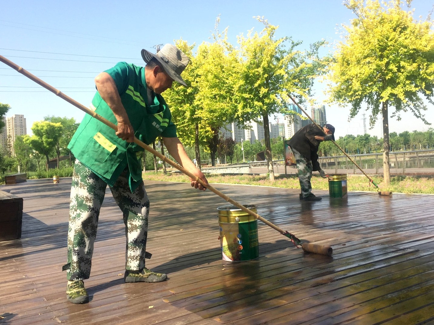 中央公園內(nèi)干凈、優(yōu)美的環(huán)境,離不開勞動者辛勤維護(hù)。5月19日,市區(qū)最高氣溫達(dá)32℃,記者用鏡頭記錄了中央公園內(nèi)勞動者辛勤工作的身影。記者 牛志勇 攝