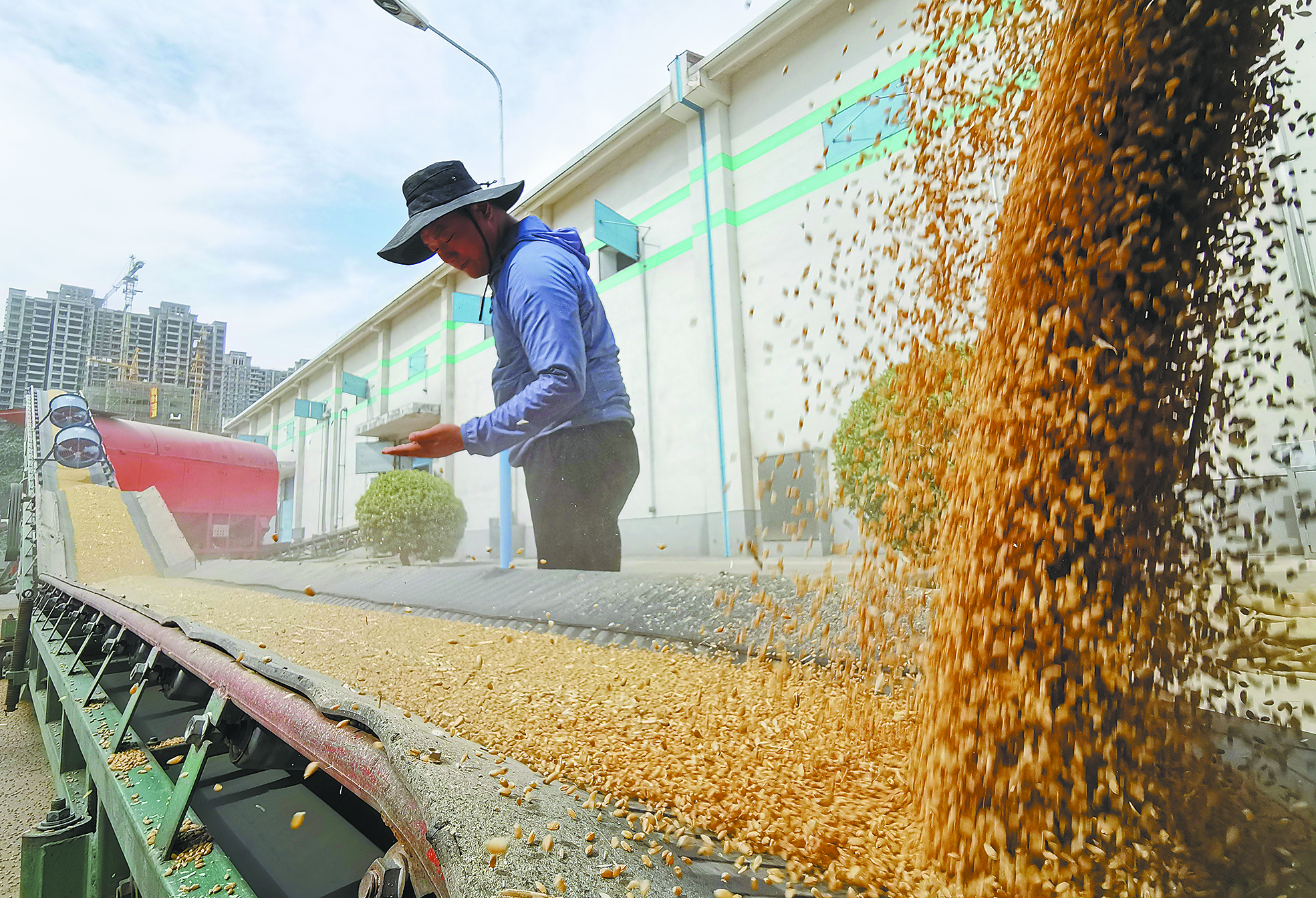 6月4日,在許昌新興國家糧食儲備庫,從貨車上卸載的小麥隨著傳送帶源源不斷輸入糧庫。當前,我市各大國儲糧庫及時騰倉并容,敞開收購。據悉,今年小麥(國標三等質量標準)最低收購價保持2019年水平不變,為每公斤2.24元。