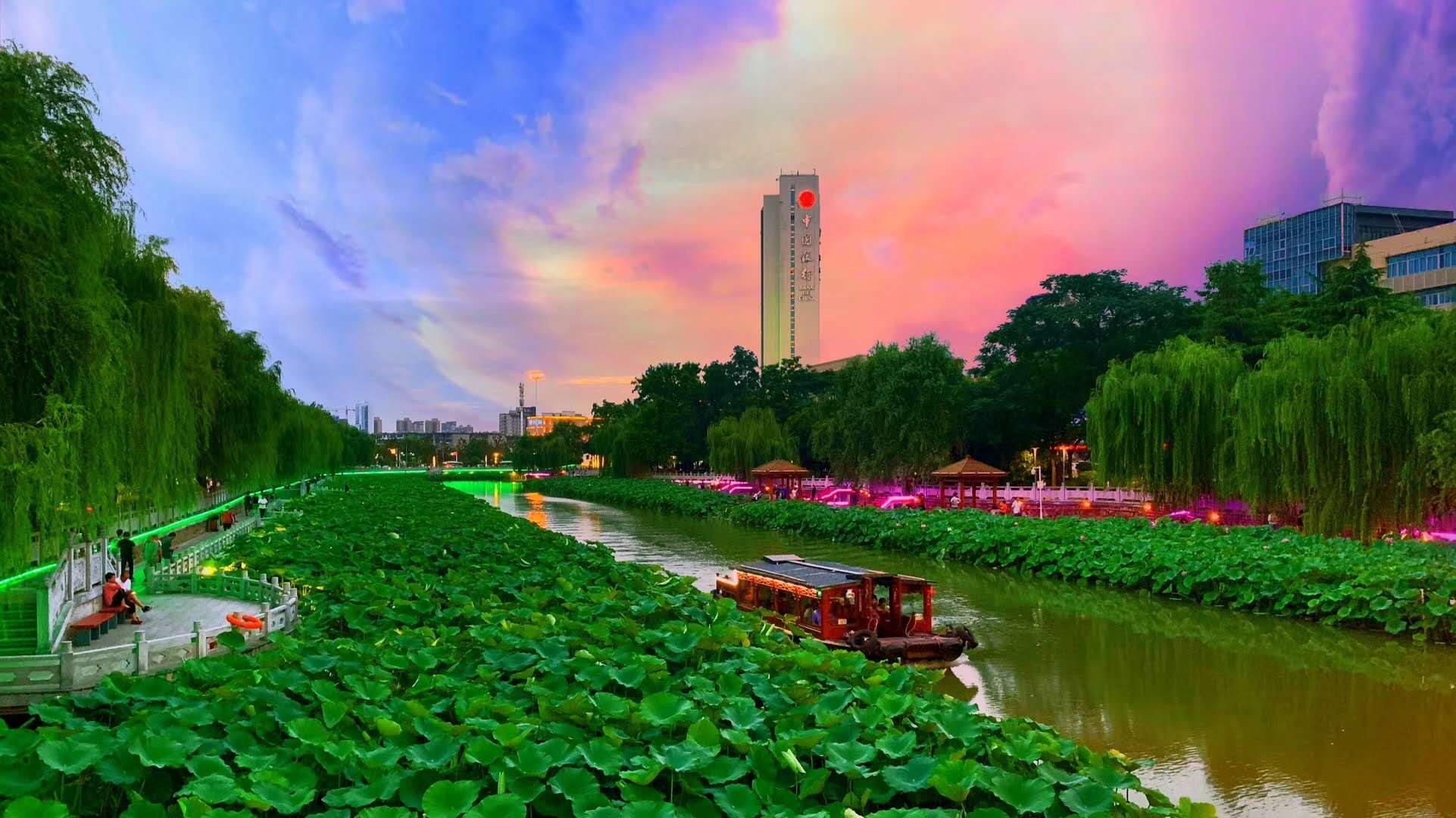 護(hù)城河畔,綺麗的晚霞鋪滿天空,如詩(shī)如畫(huà),絢麗多彩,令人陶醉。 晨報(bào)攝友 高文勝 攝
