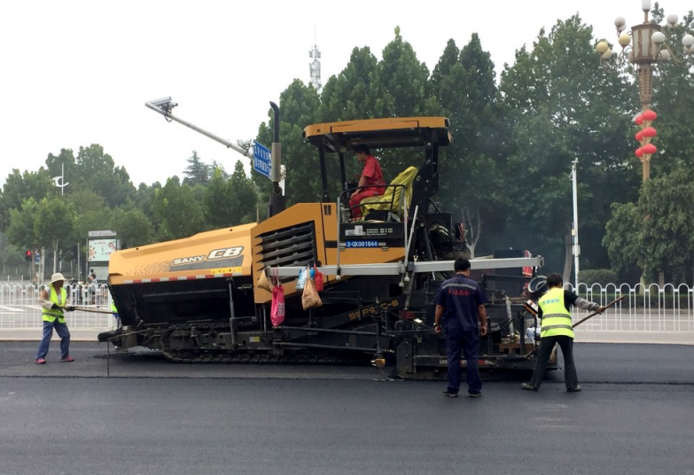 8月15日,市區魏武大道,工人正在修補破損路面。近段時間,東城區市政部門組織人員對魏武大道、天寶路、魏文路、陳莊街等路段的破損路面進行修補,方便市民出行。