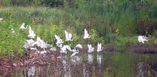 數十只白鷺在水邊嬉戲。 晨報攝友高文勝攝