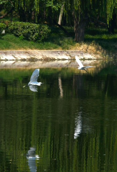 白鷺時而飛翔,時而覓食,一幅美麗的生態畫卷呈現在市民面前。 記者 牛志勇 攝