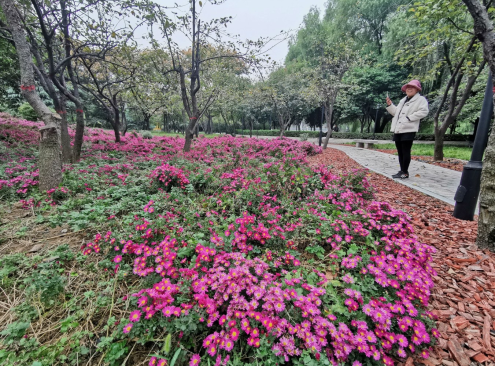 清潩河畔,彩菊怒放