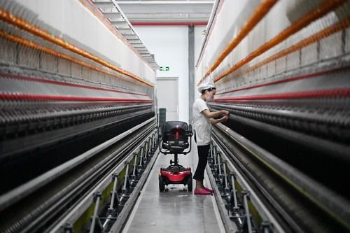 記者采訪發現,商丘市承接產業并非簡單“平移”,多是“再造式轉移”,后發優勢凸顯。在夏邑縣恒天永安新織造有限公司的紡紗車間,自動抓棉、自動落紗、自動包裝……安裝15萬個傳感器,設備全流程自動化生產,工人騎平衡車查看生產情況。