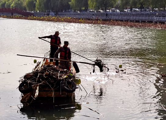 http://www.atbzeot.com/pic/202011/03/60dd3885-8122-485d-bdc7-2159d6ce9cdad5d519f1-9960-4f43-b5cb-7c543e39bb20.png 11月2日上午,市區(qū)南護城河西段望仙橋邊,兩名市政工人正在收割、打撈枯萎的荷葉。 市市政實業(yè)集團有限公司護城河養(yǎng)護項目部負責(zé)人姜晨龍介紹,枯萎的荷葉如不及時收割、打撈,會在河中腐爛,進而影響水質(zhì)。10月下旬以來,他們出動了20名工人和7條保潔船實施作業(yè)。預(yù)計本月上旬,護城河中所有的枯萎荷葉將清理完畢。記者 呂正子 攝 http://www.atbzeot.com/pic/202011/03/60dd3885-8122-485d-bdc7-2159d6ce9cdad5d519f1-9960-4f43-b5cb-7c543e39bb20.png