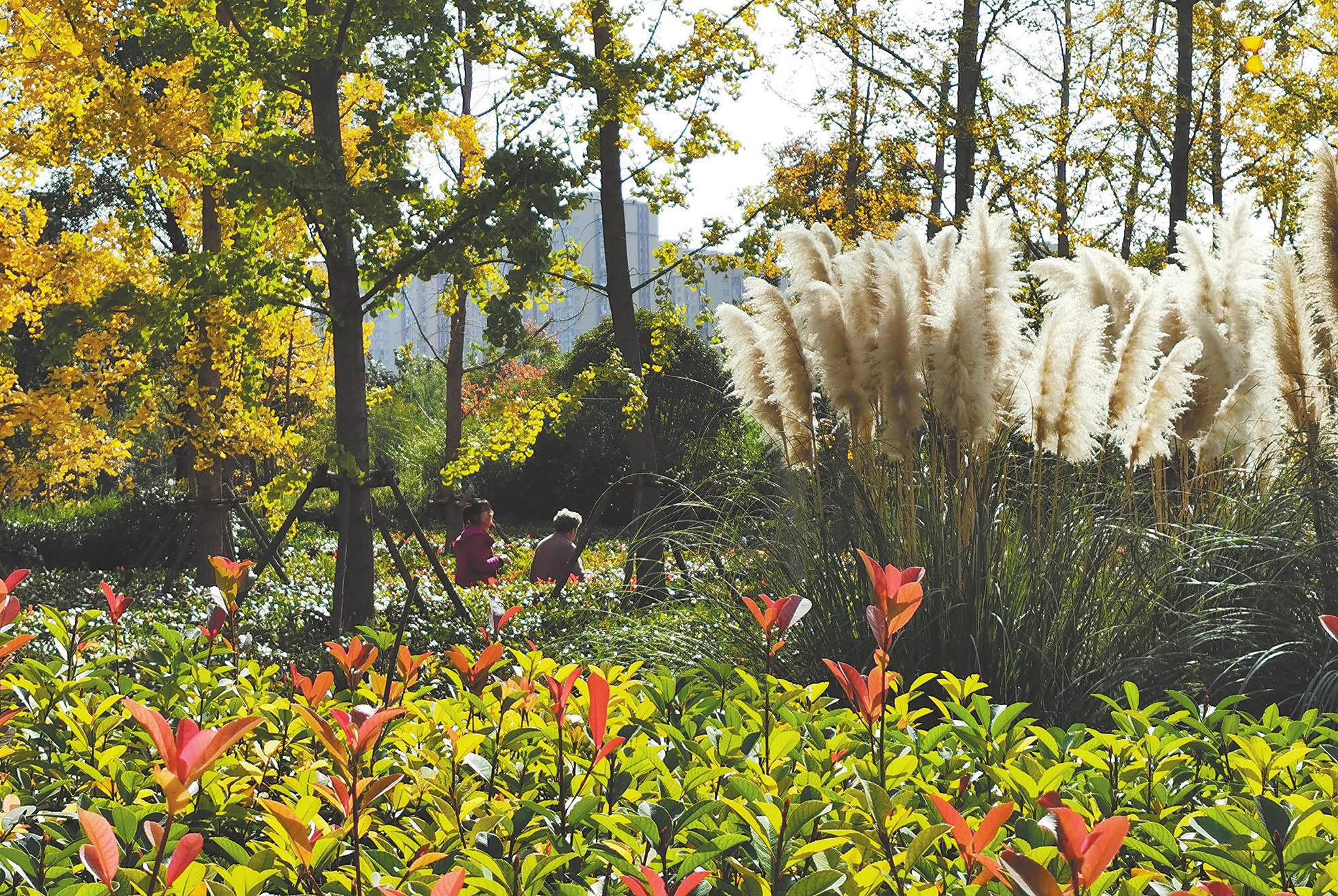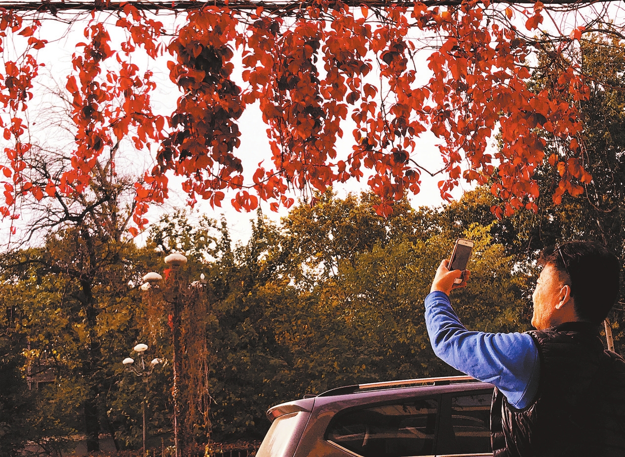 深秋時節,許昌市區的公園、游園、景觀道路處處姹紫嫣紅、秋韻盎然,讓人爽心悅目。圖為11月2日市民在市區五一路北段拍攝美景。 呂超峰 攝