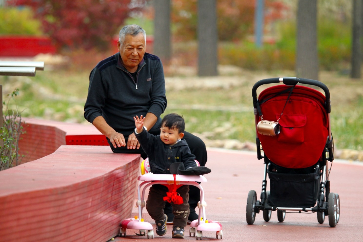 11月15日,祖孫二人在中央公園里游玩,欣賞初冬美景。目前,中央公園經過提升改造,城市公園的功能得到增強,環境優美,成為市民流連忘返的休閑、娛樂場所。近年來,我市居住環境、生態環境發生著日新月異的變化,城鄉面貌煥然一新,人們實現了安居樂業的夢想。 記者 牛書培 攝