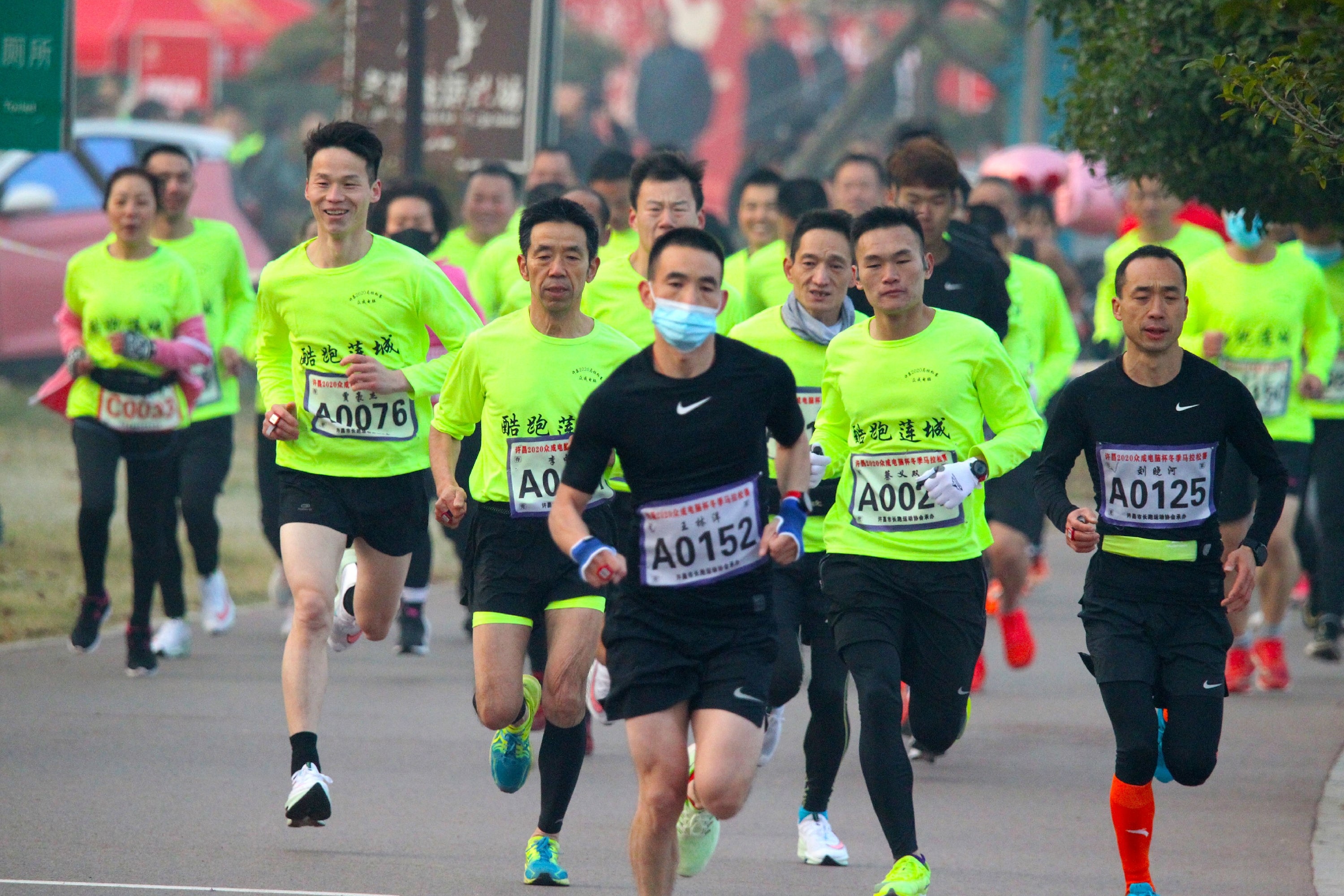 11月29日,參加許昌2020冬季馬拉松比賽的選手們?cè)诒荣愔小.?dāng)日,由許昌市體育局和許昌市老年體育協(xié)會(huì)主辦的許昌2020冬季馬拉松比賽在鹿鳴湖體育公園鳴槍開賽,吸引了240余人參賽。近年來(lái),我市以發(fā)展群眾體育、增強(qiáng)市民體質(zhì)為根本任務(wù),加快推進(jìn)城鄉(xiāng)公共體育設(shè)施建設(shè),體育事業(yè)取得了長(zhǎng)足進(jìn)步,全民健身事業(yè)蓬勃開展,體育已成為蓮城人民美好生活中的重要組成部分。記者 牛書培 攝