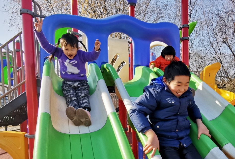 1月1日,東城區(qū)一街頭游園,孩子們在娛樂場地開心快樂地玩耍,喜迎新年。 本報記者 喬利峰 攝
