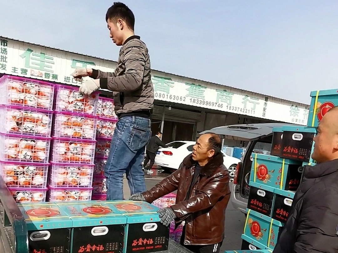 1月31日,在鮮之達中原國際農產品物流港,市民馬先生將選購的十幾箱水果塞進了自己開的面包車?!按汗澘斓搅?。按照許昌的習俗,春節前后要走親訪友,水果是必備的禮品?!瘪R先生說。
