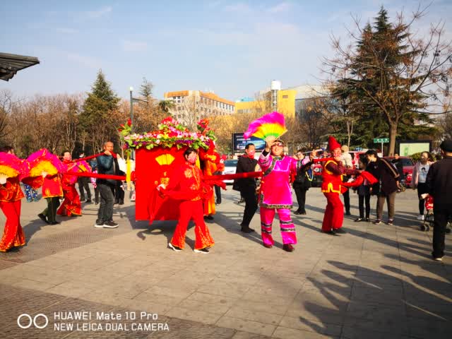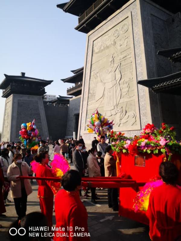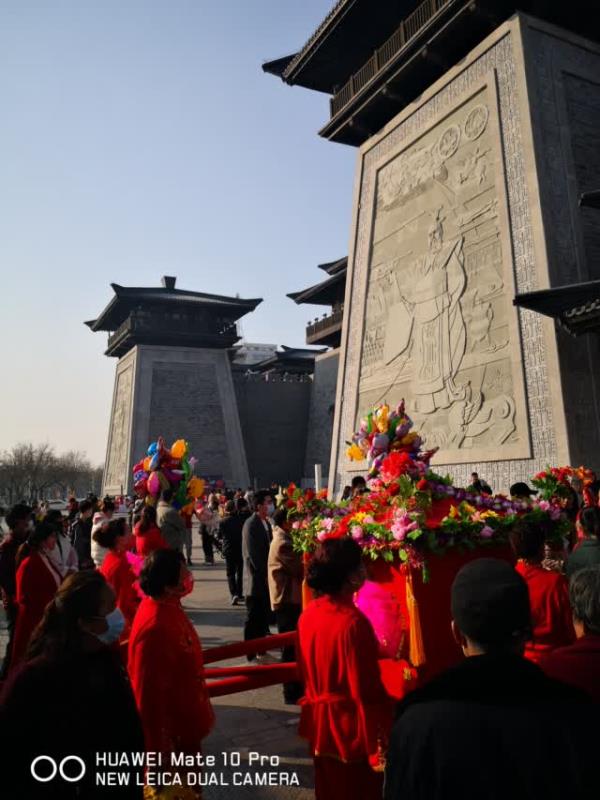 許昌曹魏古城迎來了大張社區花轎隊的迎親表演