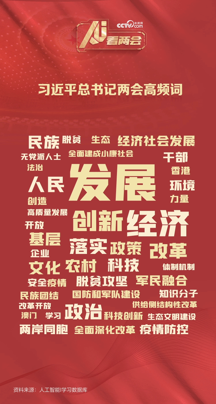 央視網(wǎng)人工智能編輯部依托人工智能I學(xué)習(xí)數(shù)據(jù)庫(kù),梳理了習(xí)近平總書(shū)記8年46次“下團(tuán)組”的相關(guān)報(bào)道,歸納了總書(shū)記“兩會(huì)時(shí)間”的講話高頻詞。