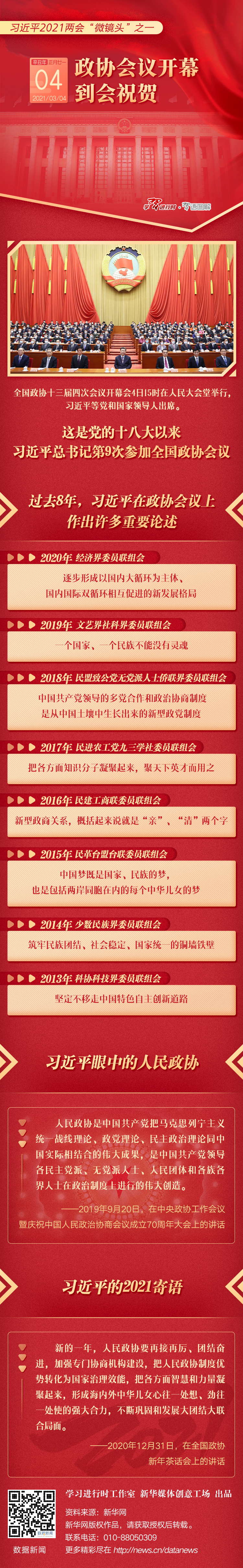 習近平2021兩會“微鏡頭”之一:3月4日 政協會議開幕,到會祝賀