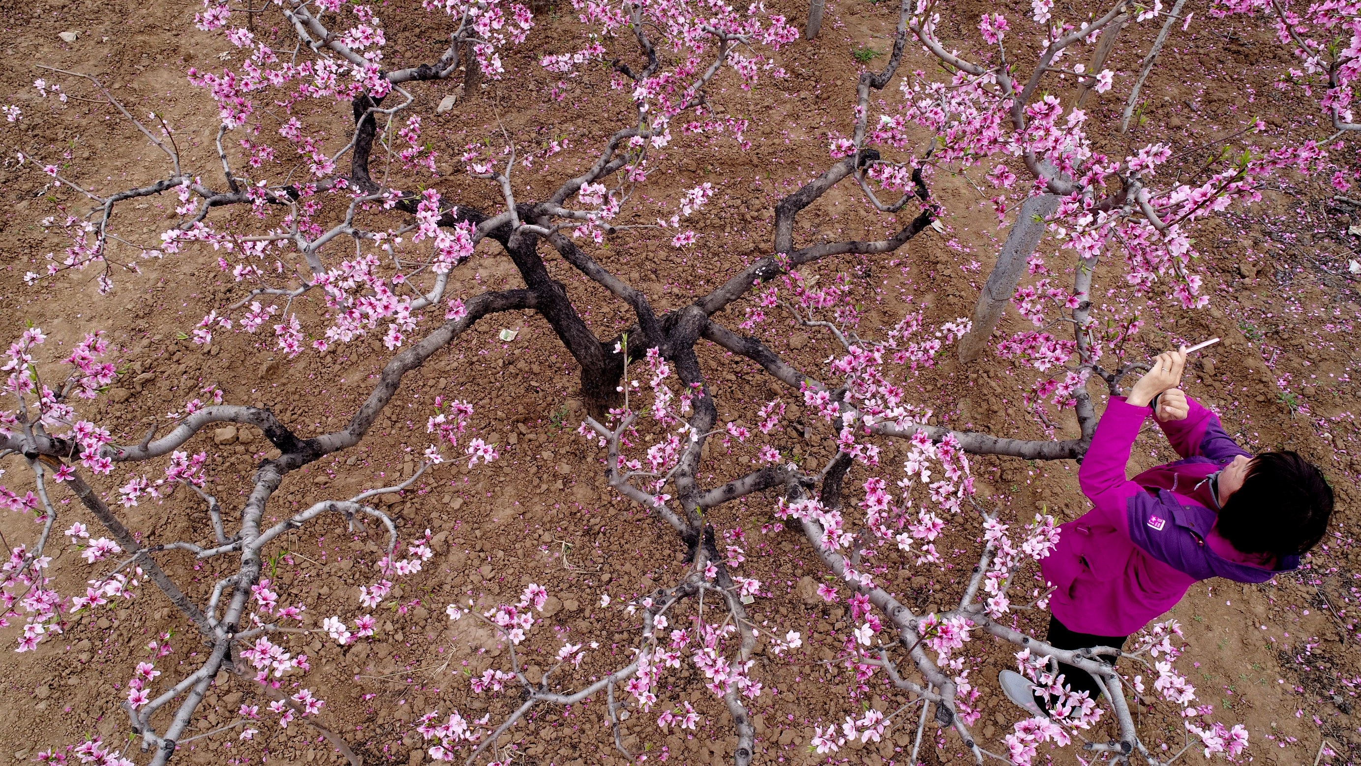 近日,襄城縣茨溝鄉(xiāng)武灣村萬畝桃花迎著春光,悄然綻放。遍野的桃花,染紅了阡陌,從空中俯瞰大地,分外妖嬈,吸引眾多游客前來踏青賞花。當(dāng)?shù)毓r(nóng)介紹,由于近段時(shí)間天氣晴暖,今年的桃花開得比往年早,現(xiàn)在已是怒放期。 記者 牛書培 攝