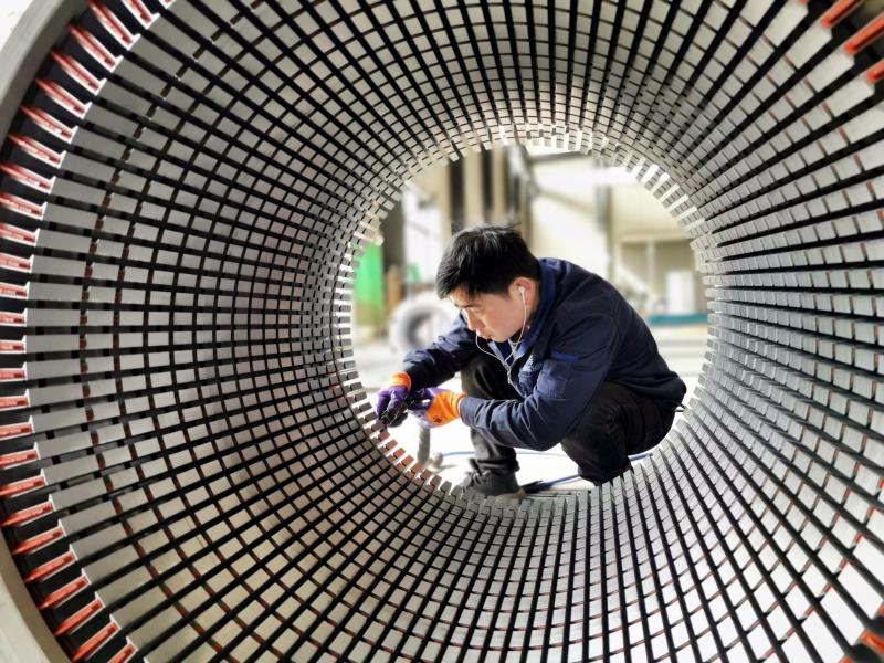 4月6日,位于長(zhǎng)葛市產(chǎn)業(yè)集聚區(qū)的永榮動(dòng)力科技有限公司,工人加緊生產(chǎn)。該公司生產(chǎn)的電機(jī)定子、轉(zhuǎn)子和鐵芯是電機(jī)的“心臟”,可廣泛應(yīng)用于軌道交通、新能源汽車等領(lǐng)域,出口歐美等10多個(gè)國(guó)家。