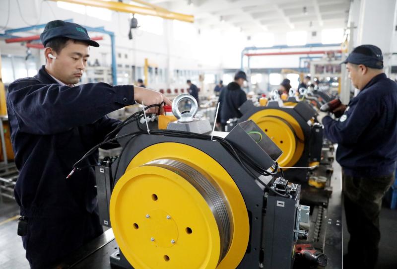 4月13日,在位于國家許昌經濟技術開發區的迅達(許昌)驅動技術有限公司,員工正在生產電梯曳引機。該公司堅持自主創新,研發生產的自動扶梯和自動人行道驅動主機及電梯零部件產銷量呈現持續穩步的增長態勢。