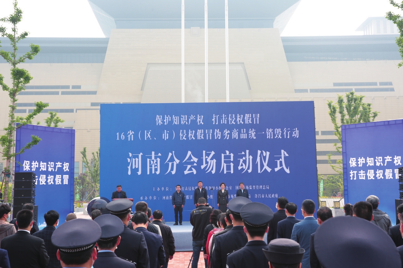 為迎接“世界知識產(chǎn)權(quán)日”的到來,4月23日,全省侵權(quán)假冒偽劣商品集中統(tǒng)一銷毀行動在我市舉行。此次活動,許昌作為全國分會場、河南主會場,是國家市場監(jiān)督管理總局、省市場監(jiān)督管理局對許昌“雙打”(打擊侵犯知識產(chǎn)權(quán)和制售假冒偽劣商品)工作的高度肯定。