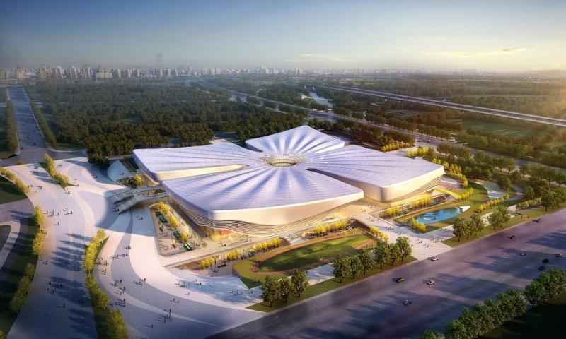 經過近一年的建設,目前,一期項目體育場場館主體混凝土工程已經施工完成,砌體工程及屋面鋼結構工程的準備工作正在穩步推進,二期項目也已于今年4月開工。據了解,二期項目占地240.91畝,計劃總投資12億元,總建筑面積21.9萬平方米,主要建設“三館一中心”,即游泳館、體育館、健身展覽館和運動管理中心。其中,游泳館規模為1500座,建筑面積1.6萬平方米;體育館規模為8000座,建筑面積2.8萬平方米;健身展覽館建筑面積2.1萬平方米;運動管理中心建筑面積1萬平方米。“三館一中心”的外觀為荷葉造型,與體育場的蓮花造型相呼應,寓意“蓮·葉共舞”。目前,二期項目已累計完成投資2.1億元,正在進行基礎施工,預計于2023年12月完工。