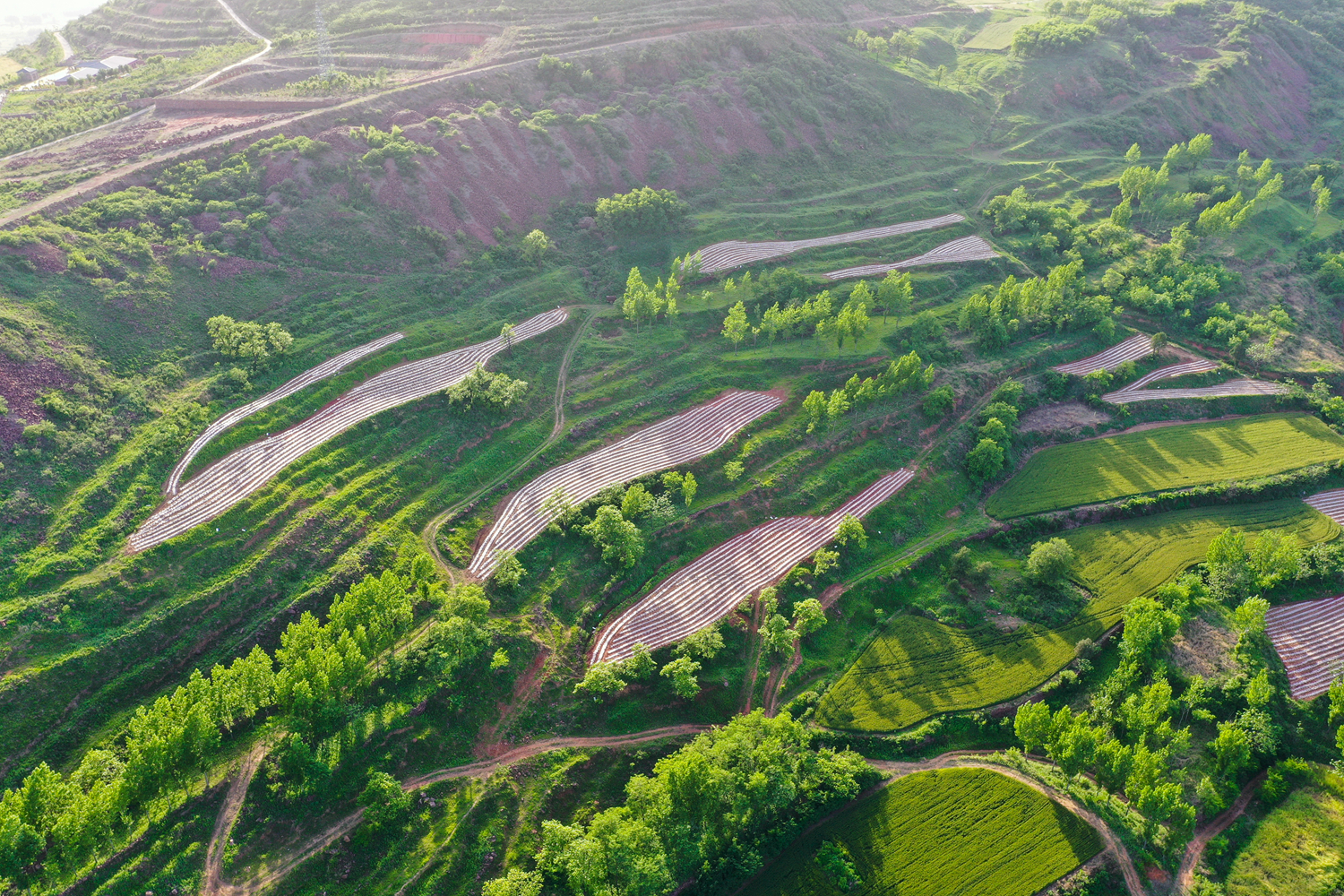 5月17日,河南省許昌市襄城、禹州煙區,全部煙葉已經移栽完畢,俯瞰煙區大地,風景秀麗、景色壯觀,覆膜后的煙田在田野大地勾勒出一幅幅美麗的鄉村圖景。近年來,煙葉作為當地主要經濟作物之一,在帶動就業、助農增收、脫貧攻堅、鄉村振興等方面發揮了重要作用。