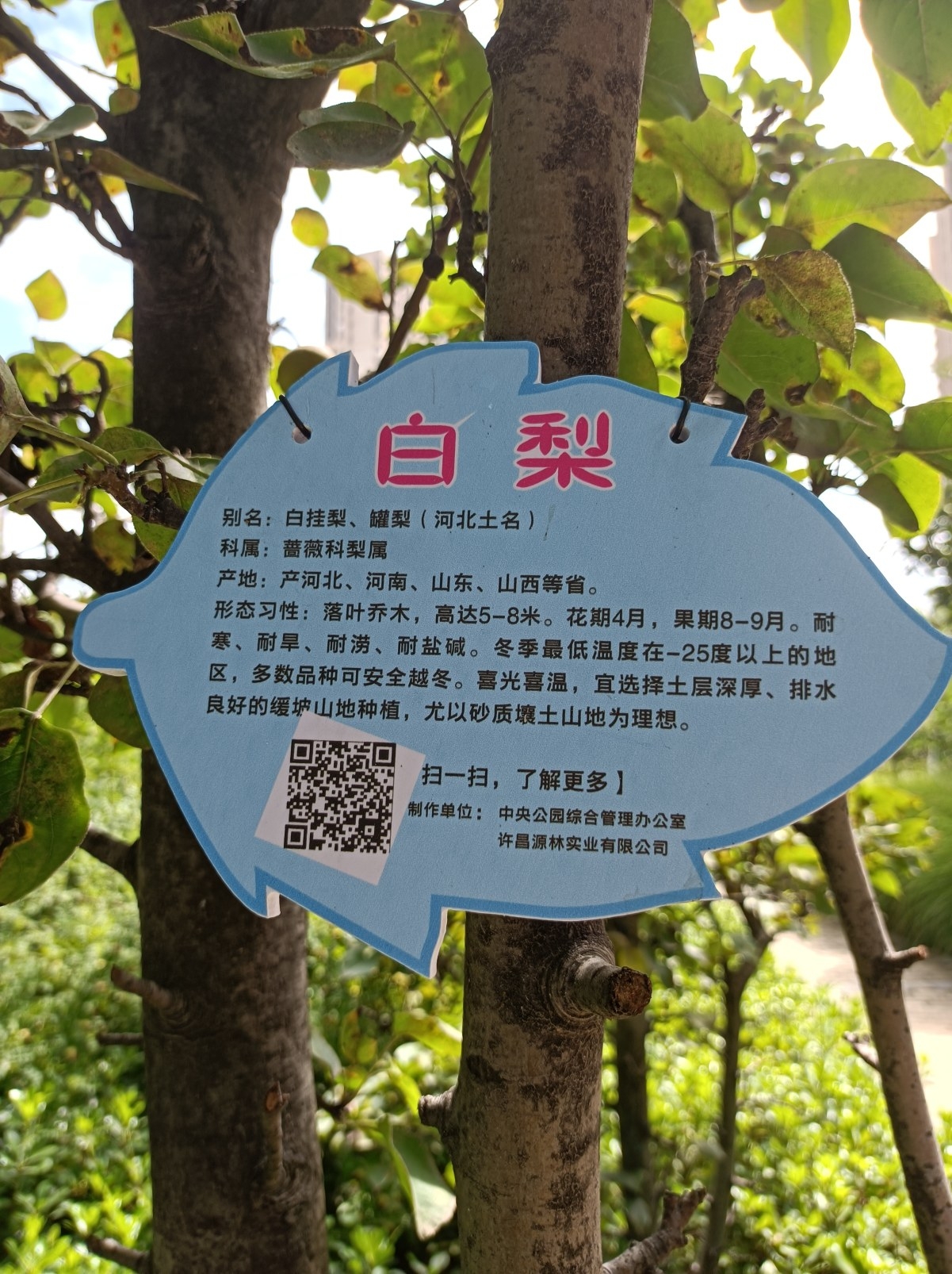 “標志牌比較小,不能詳盡地介紹植物知識。于是,我們就在標志牌上印了二維碼。”中央公園綜合管理辦公室副主任李運忠告訴記者,如今,互聯網技術和移動設備已經普及,一個二維碼就可以滿足市民的求知欲。