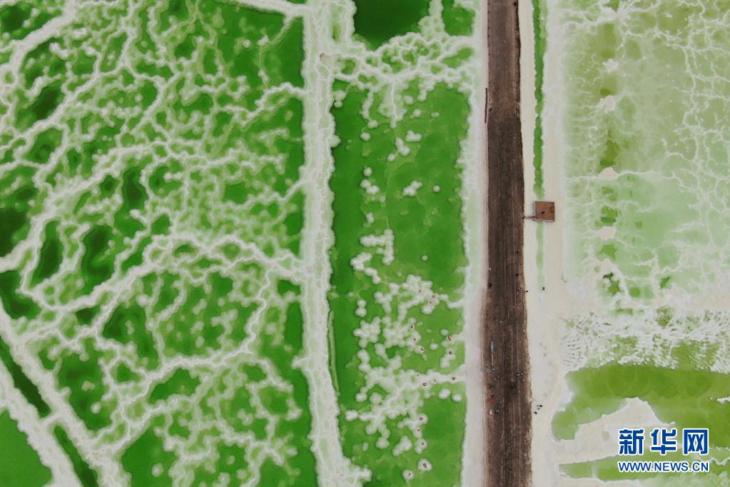 這是7月8日拍攝的察爾汗鹽湖一角(無人機(jī)照片)。