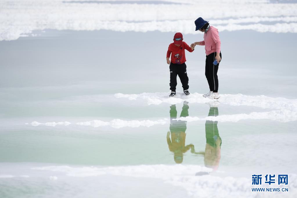 7月8日,游客在察爾汗鹽湖游玩。