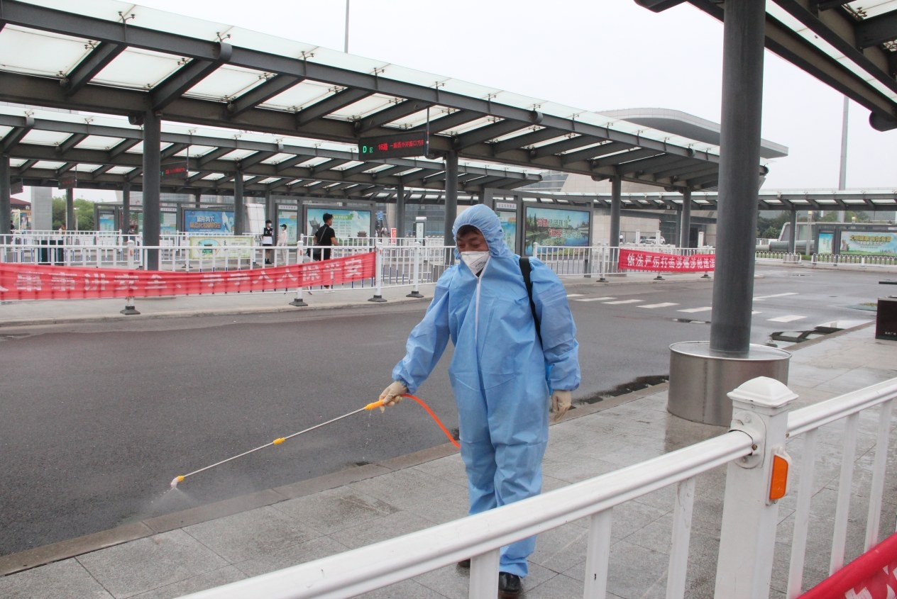 近段時間,我市遭遇暴雨襲擊,市區積水嚴重。為進一步做好衛生防疫工作,7月23日,市公交公司對永昌停保場、新興停保場等公交場站,火車站公交樞紐站,以及公交車輛等進行消殺,防止細菌滋生,為市民提供安全的乘車環境。圖為該公司工作人員在高鐵許昌東站公交樞紐站噴灑消毒液。 魏東雅 攝